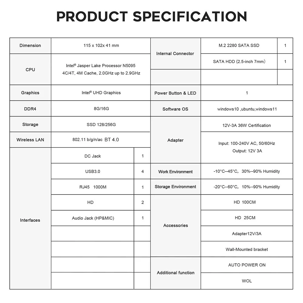 [Función adicional]Mini S Mini PC compatible con Wake On LAN, PXE Boot, RTC Wake, encendido automático (entre en la configuración de la interfaz del BIOS).Aplique menos de 1 KW/h al día. El uso de esta mini-PC de bajo consumo al menos reduce la huella de carbono.