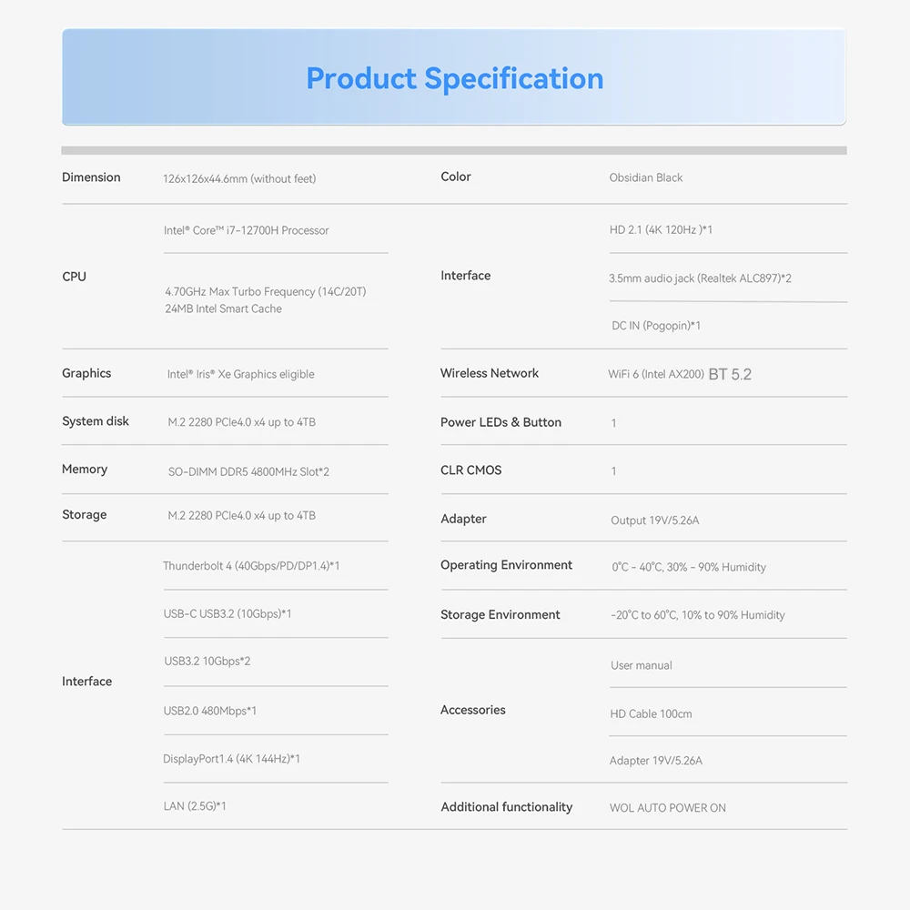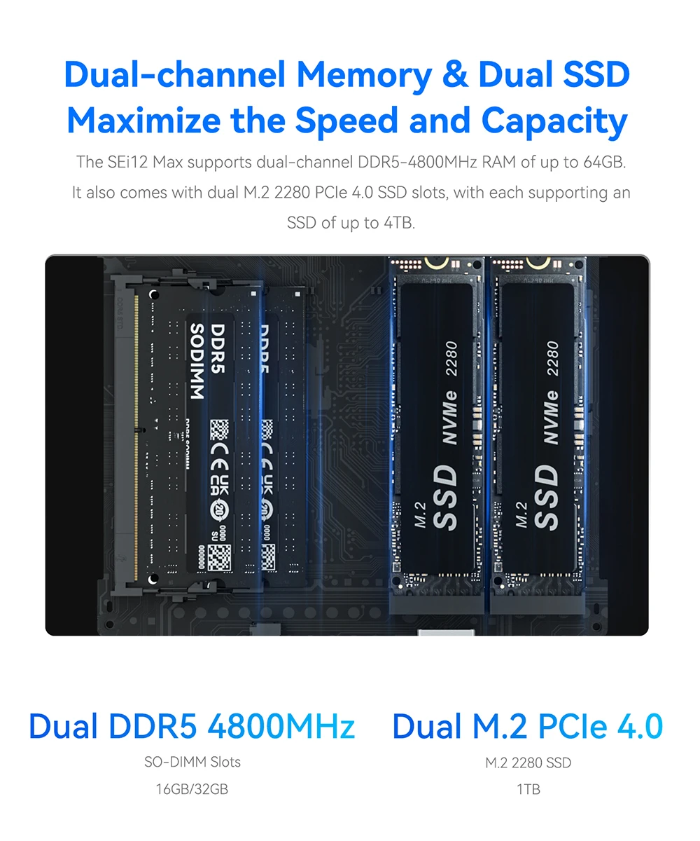 Comprar Beelink-ordenador de escritorio Sei12 Max, Intel i7 12700H (10C/16T hasta 4,7 GHz), 32GB, DDR4, 500GB, M.2, NVMe, SSD, hasta 54W, VS Sei12, 1260P