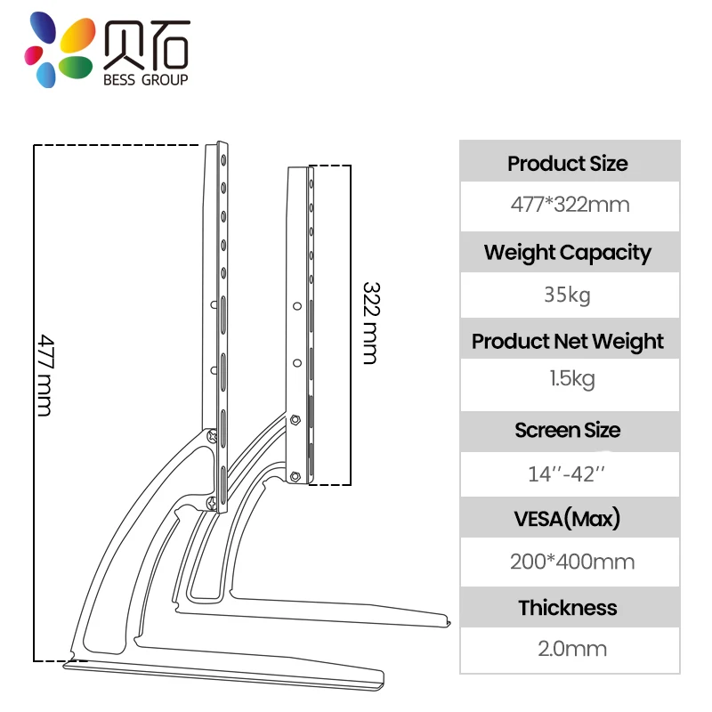 Compatibilidad de tamaño de TV:TB011-1Capacidad para televisores de 14 " - 42" y un peso de hasta 35kg/