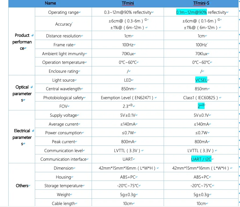 Nueva actualización Módulo de sensor de telémetro Lidar TFmini-S 0,1-12 m TOF Micro rango de punto único para Arduino Pixhawk Drone UART y IIC 0,1-12 mTFmini-S es una versión mejorada de TFmini.