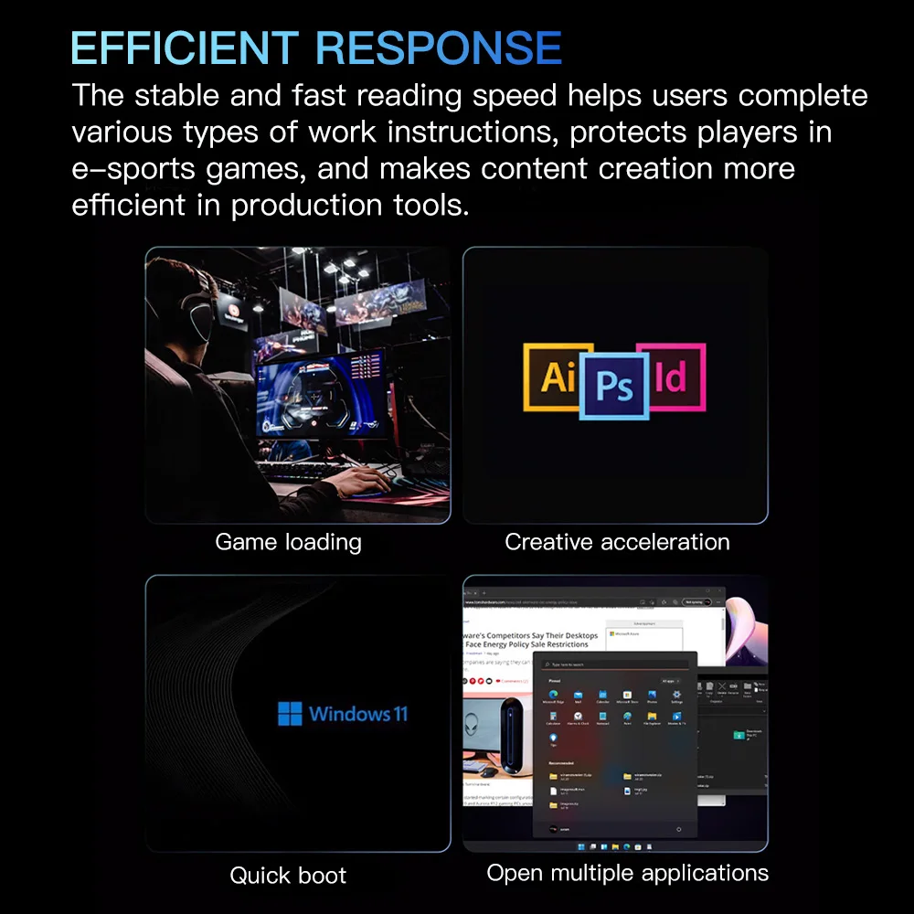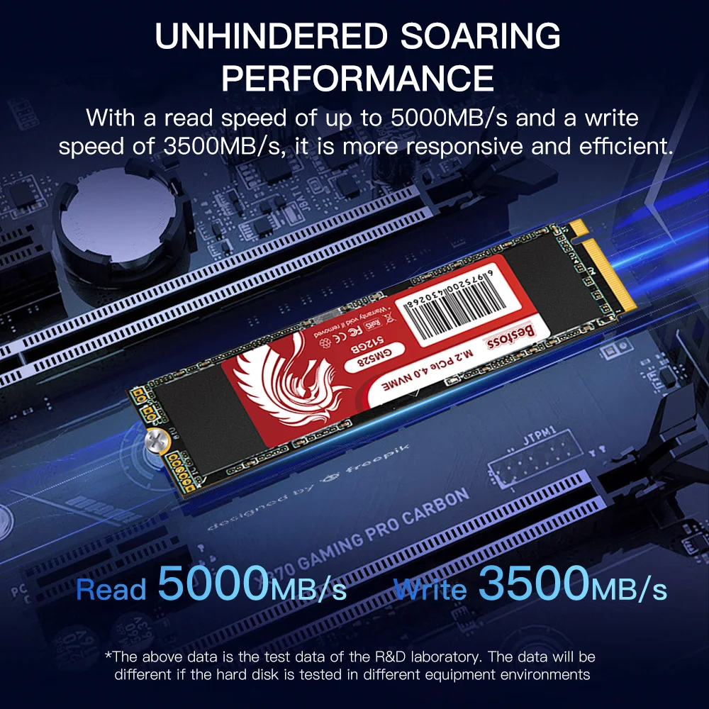 *[Alta velocidad de lectura]: utiliza la interfaz M2 NVMe Gen4.0x4 de vanguardia para lograr una velocidad de lectura notable de 5000 MB/s.