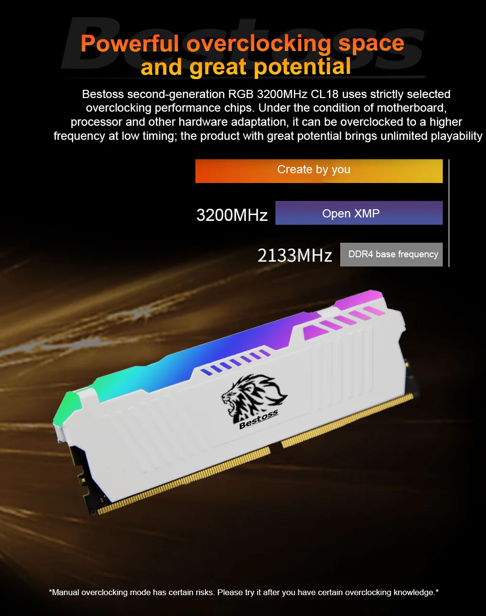 Comprar Bestoss Memoria RAM RGB DDR4 8GB 16GB 32GB (2x16GB) Kit 3200 3600MHz 288pin 1,2V DIMM RAM para escritorio