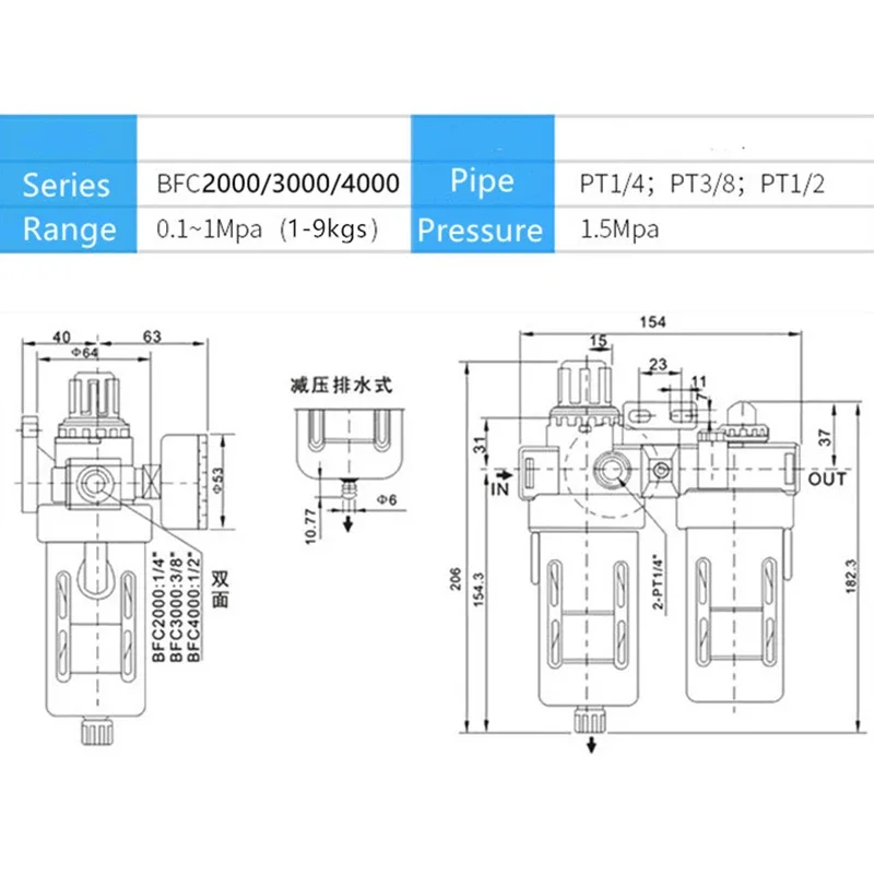 Rango de presión ajustable 0,5-9,0 kg/cm2;