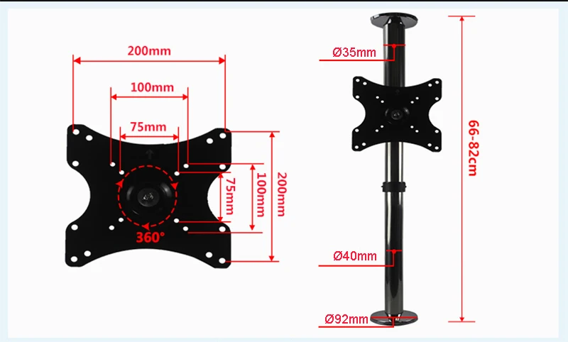Comprar BG11-S-soporte giratorio de acero inoxidable para TV LCD, montaje en pared de partición, Altura ajustable de 66-82cm, 19-40 pulgadas, nuevo