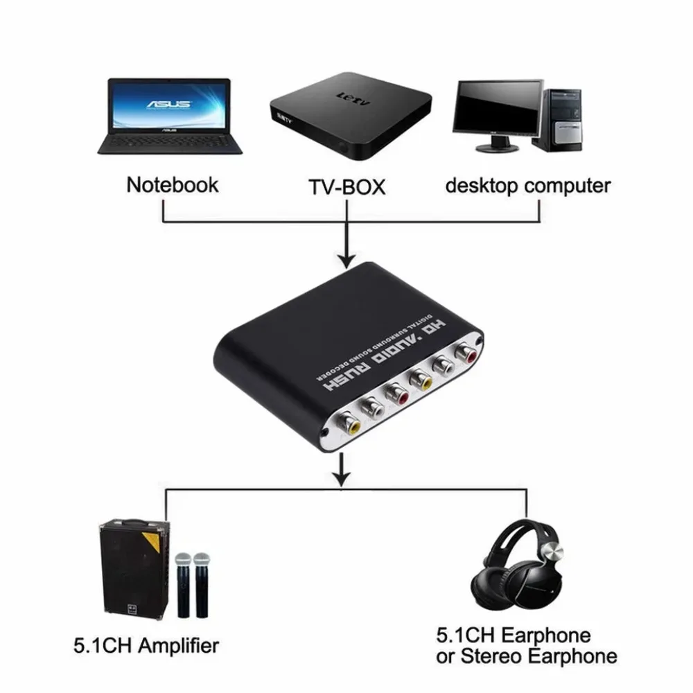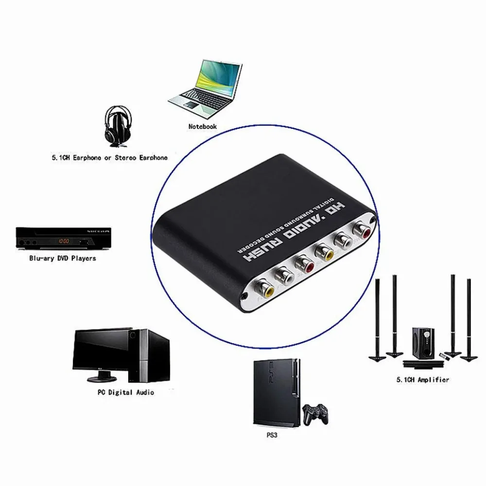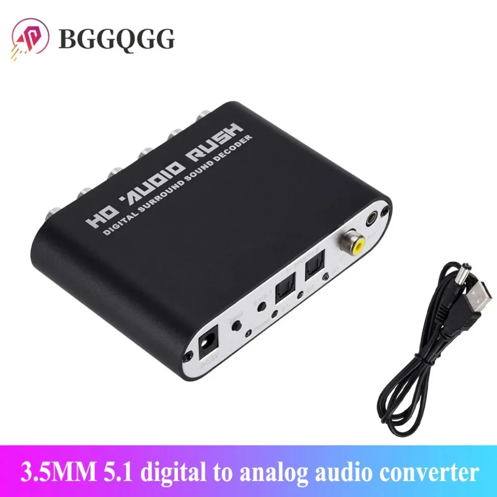 Comprar BGGQGG-Convertidor de Audio Digital a analógico 5,1, decodificador Digital a analógica, USB, DAC, óptico, SPDIF, Coaxial, AUX, sonido de 3,5mm a 6RCA