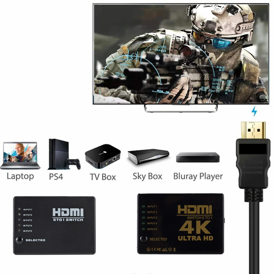 El interruptor HDMI es un producto que puede cambiar señales HDMI de varios grupos a un dispositivo de visualización de alta definición como HDTV usando un botón manual. Si lo hace, puede evitar enchufar y desenchufar los cables con frecuencia. Puede optimizar su sistema de cine en casa para obtener el mejor efecto.