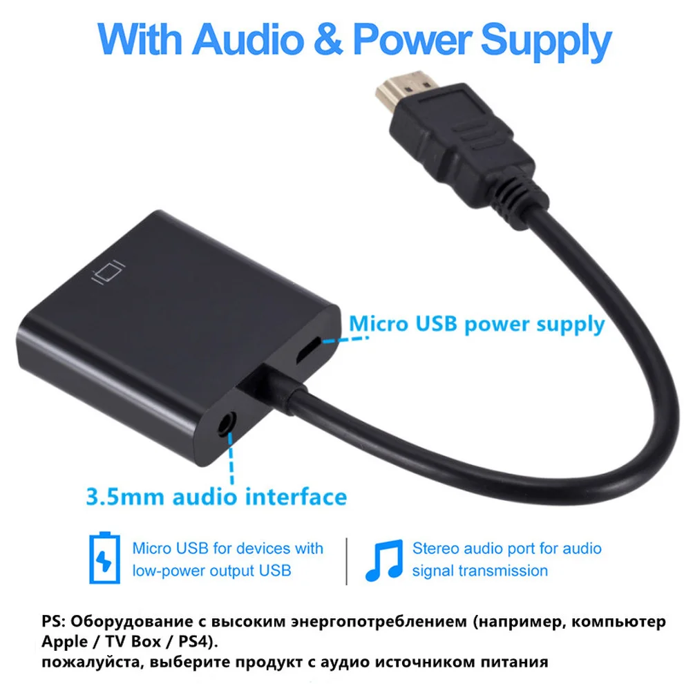 Adecuado para todos los dispositivos de interfaz de entrada HDMI y salida VGA