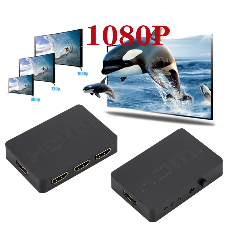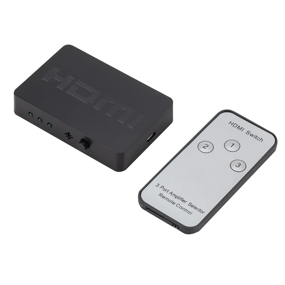 BGGQGG 3 puertos HDMI compatible Splitter Hub Box Auto Switch Control remoto 3 en 1 Out Switcher Hd 1080P para Hdtv Xbox360 Ps31. El mando HDMI 3x1 permite cambiar 3 puertos HDMI a un solo terminal por medio del botón en el mando.