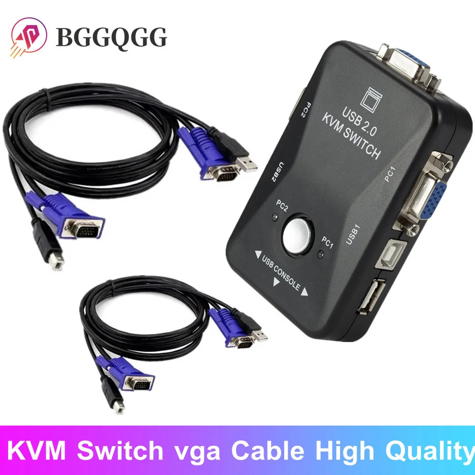 Comprar BGGQGG-interruptor KVM, Cable vga USB 2,0, caja divisora vga para teclado, ratón, adaptador de monitor, interruptor de impresora USB de alta calidad