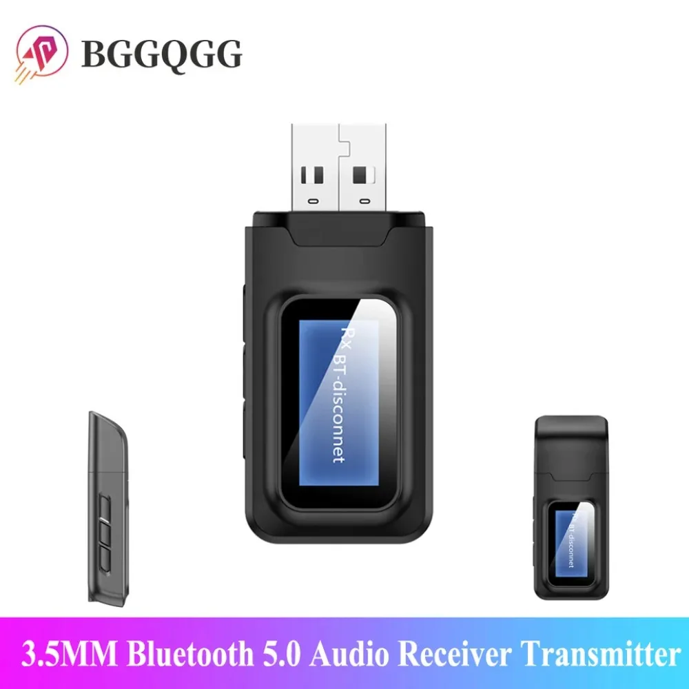 Comprar BGGQGG-receptor de Audio con Bluetooth 3,5, transmisor con pantalla LCD de 5,0 MM, enchufe USB estéreo, adaptador Bluetooth para coche, PC y TV, 3,5mm