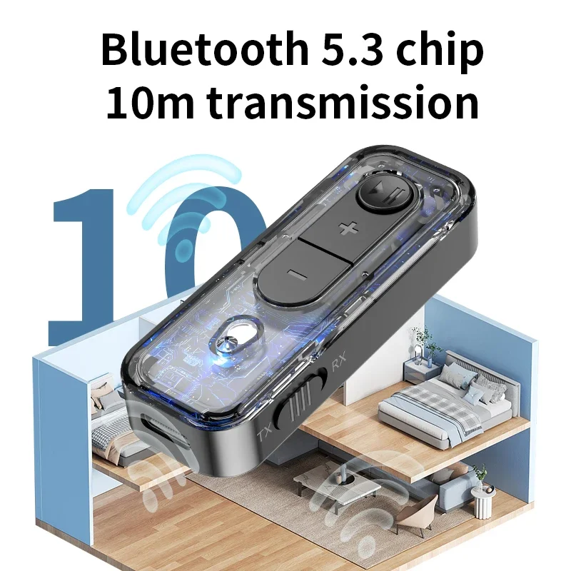 BGGQGG 2 en 1 BT 5,3 transmisor receptor 3,5mm adaptador BT adaptador para coche para TV/auriculares/altavoces/estéreo de coche/estéreo para el hogar1. Características:(1). Conectividad versátil de modo dual: con la capacidad de cambiar entre señales de recepción y transmisión, el receptor transmisor BT 5,3 es compatible con múltiples dispositivos. Esta flexibilidad permite una conectividad perfecta y un uso conveniente a través de varios dispositivos de audio.