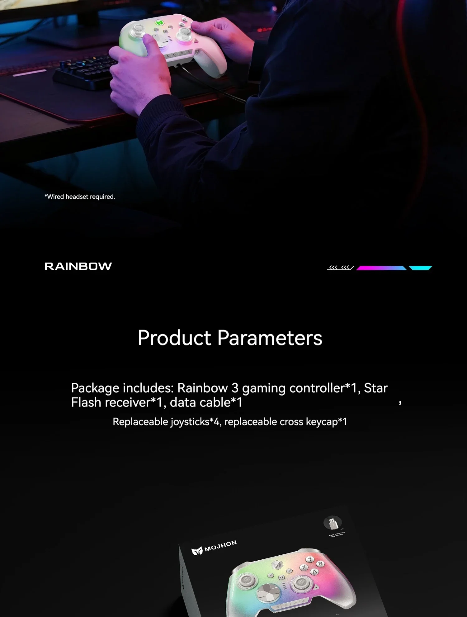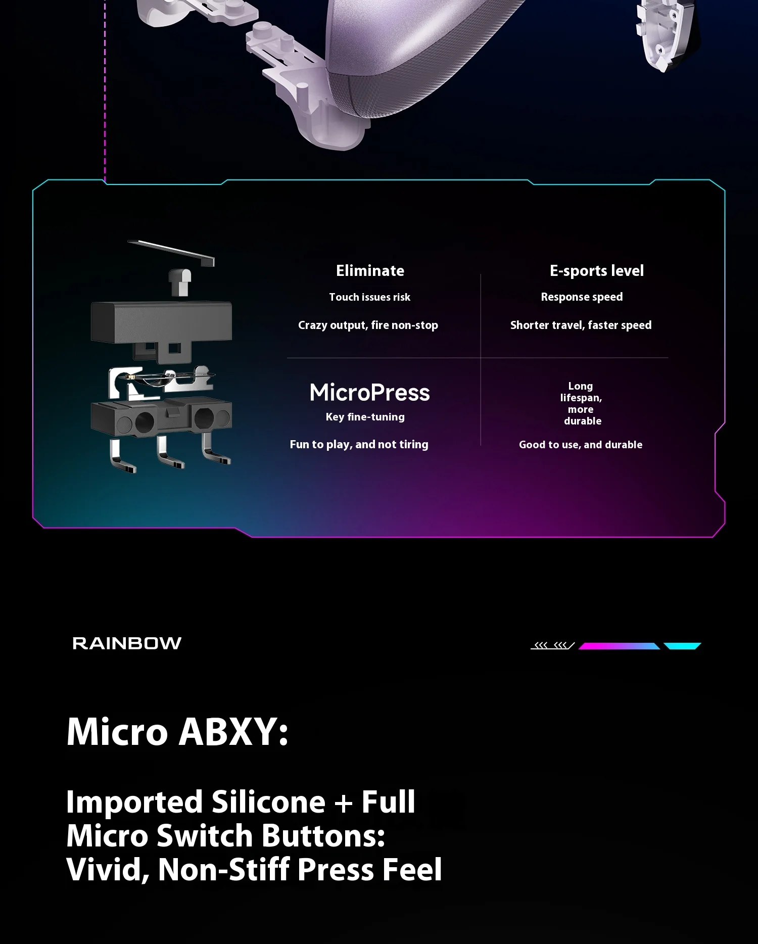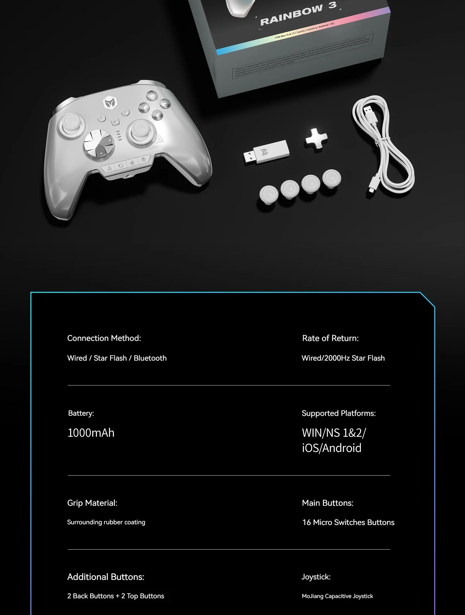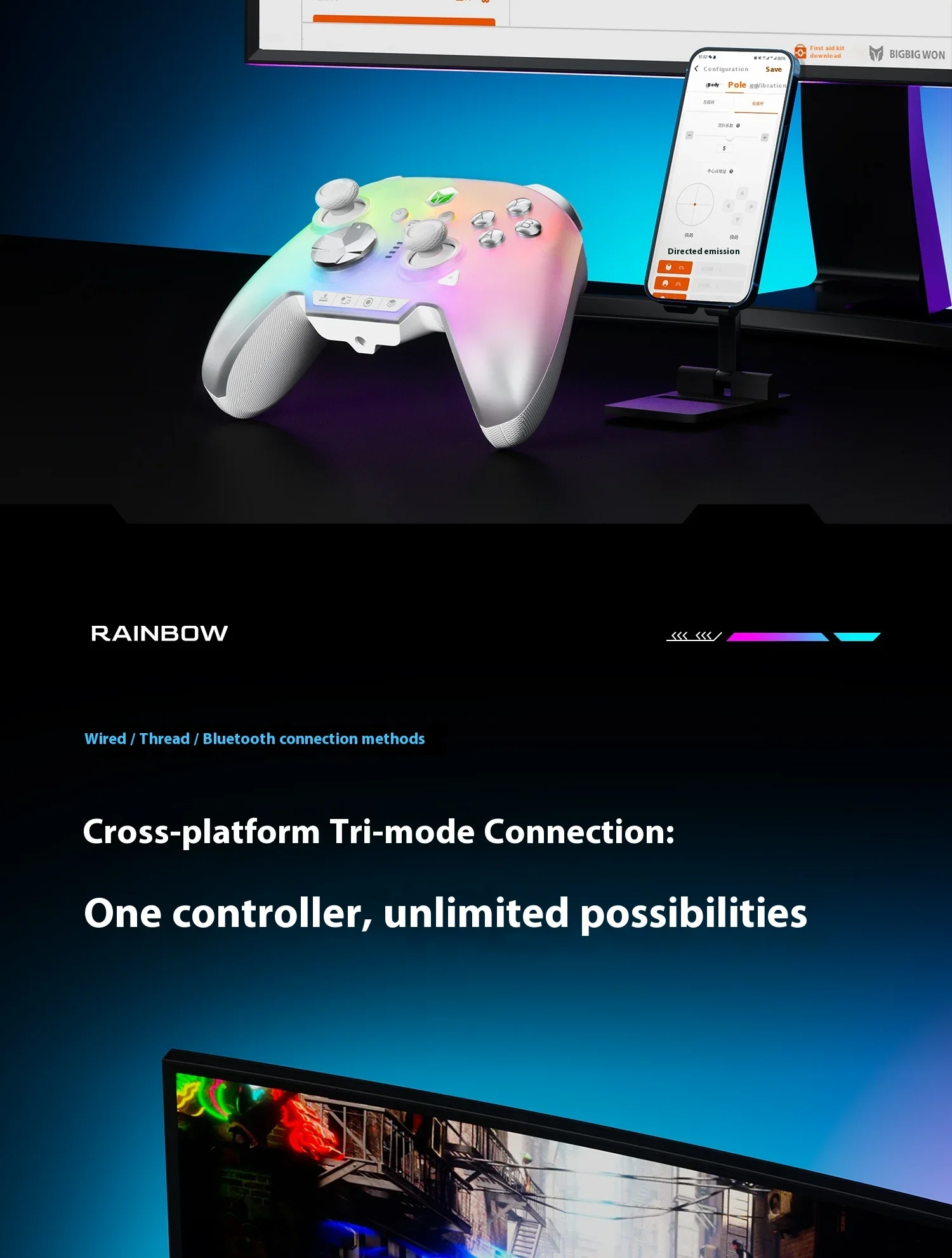 BIGBIGWON Rainbow3 controladores de juego inalámbricos Bluetooth Gamepads con batería de 1000mAh de duración interfaz de Audio de 3,5mm para interruptor de PC