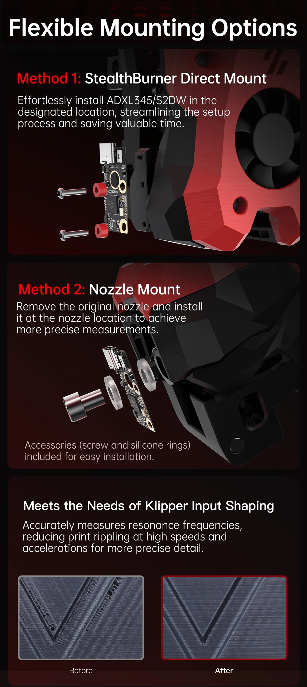 Funciona muy bien. Si ejecuta una versión anterior de Klipper, asegúrese de obtener el ADXL345 y no el 2SDW. Me causó algunos problemas.