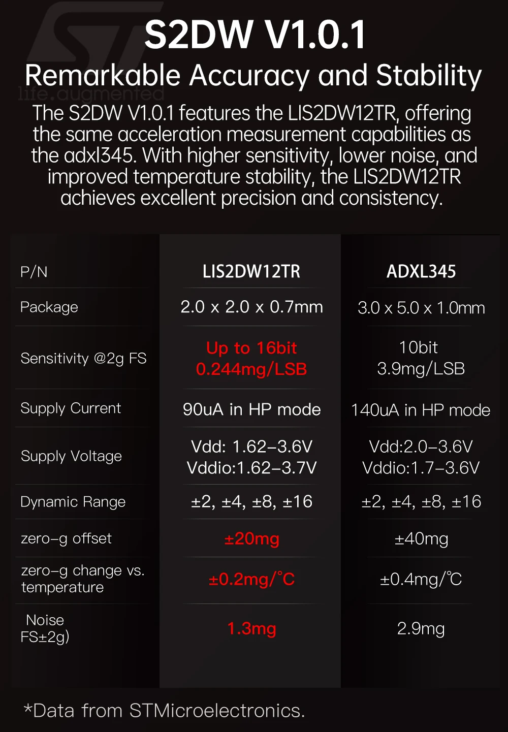 4. El ADXL345 es un sensor de aceleración de 3 ejes con una selección de rangos de medición de ±2 g, ±4 g, ±8 g o ±16 g con resolución de 13 bits.La capacidad de medir tanto la aceleración dinámica debido al movimiento o impacto como la aceleración estacionaria, como la aceleración gravitacional, permite utilizar el dispositivo como sensor de inclinación.