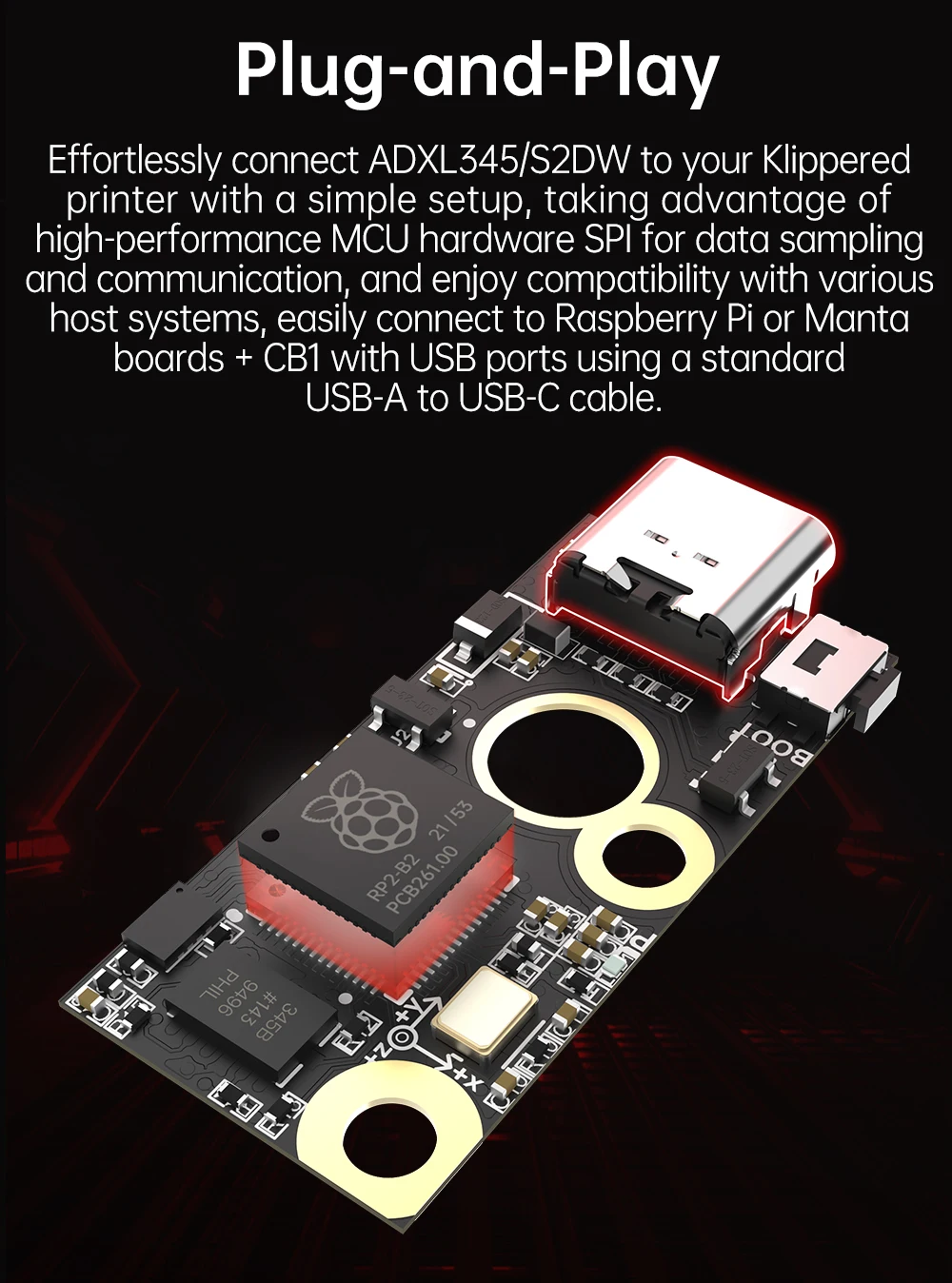 BIGTREETECH ADXL345 es una placa acelerométrica de boquilla de tres ejes fabricada mediante impresión 3D
