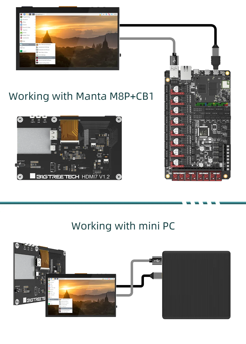 BIGTREETECH HDMI7 V1.0 es una pantalla HDMI universal de 7 pulgadas desarrollada por el equipo de impresión 3D de Shenzhen Big Tree Technology Co., Ltd.