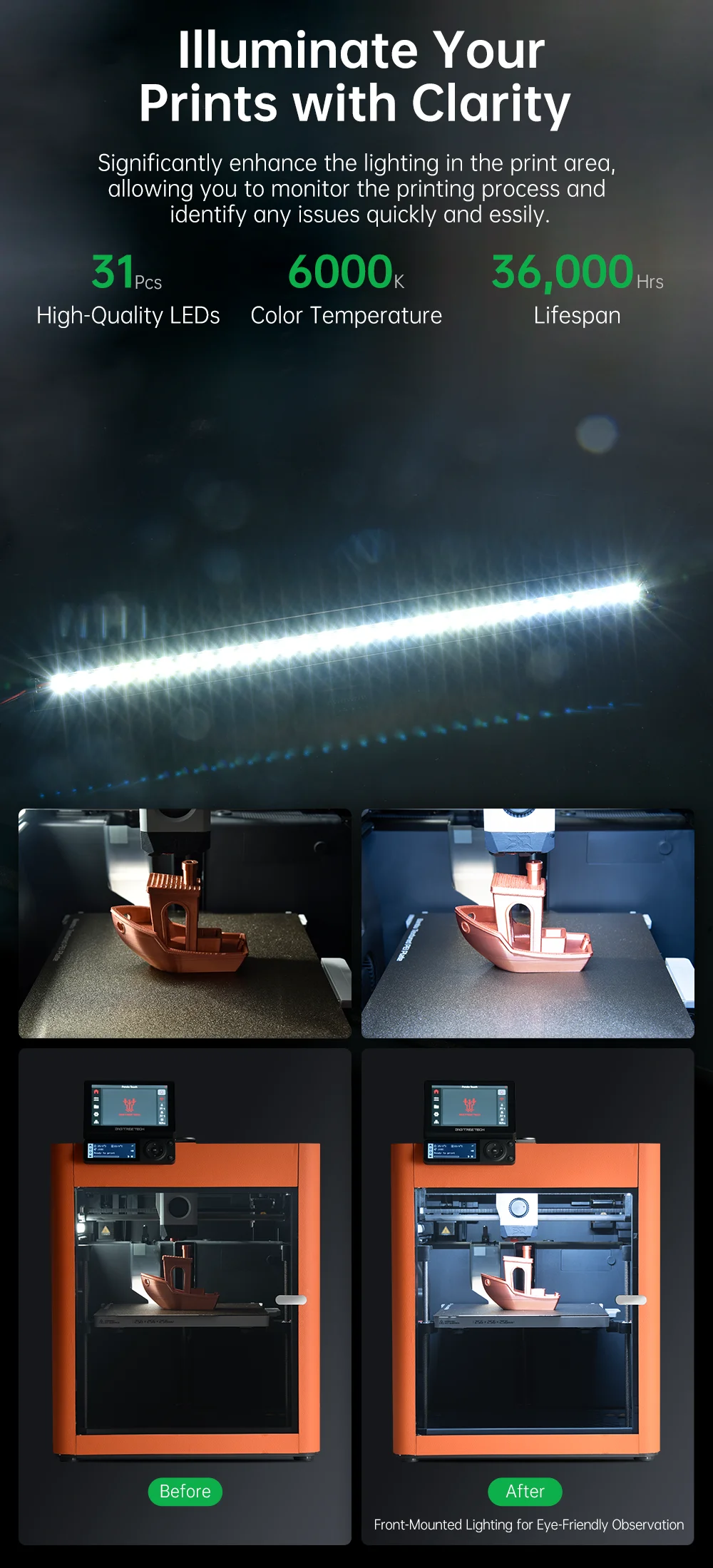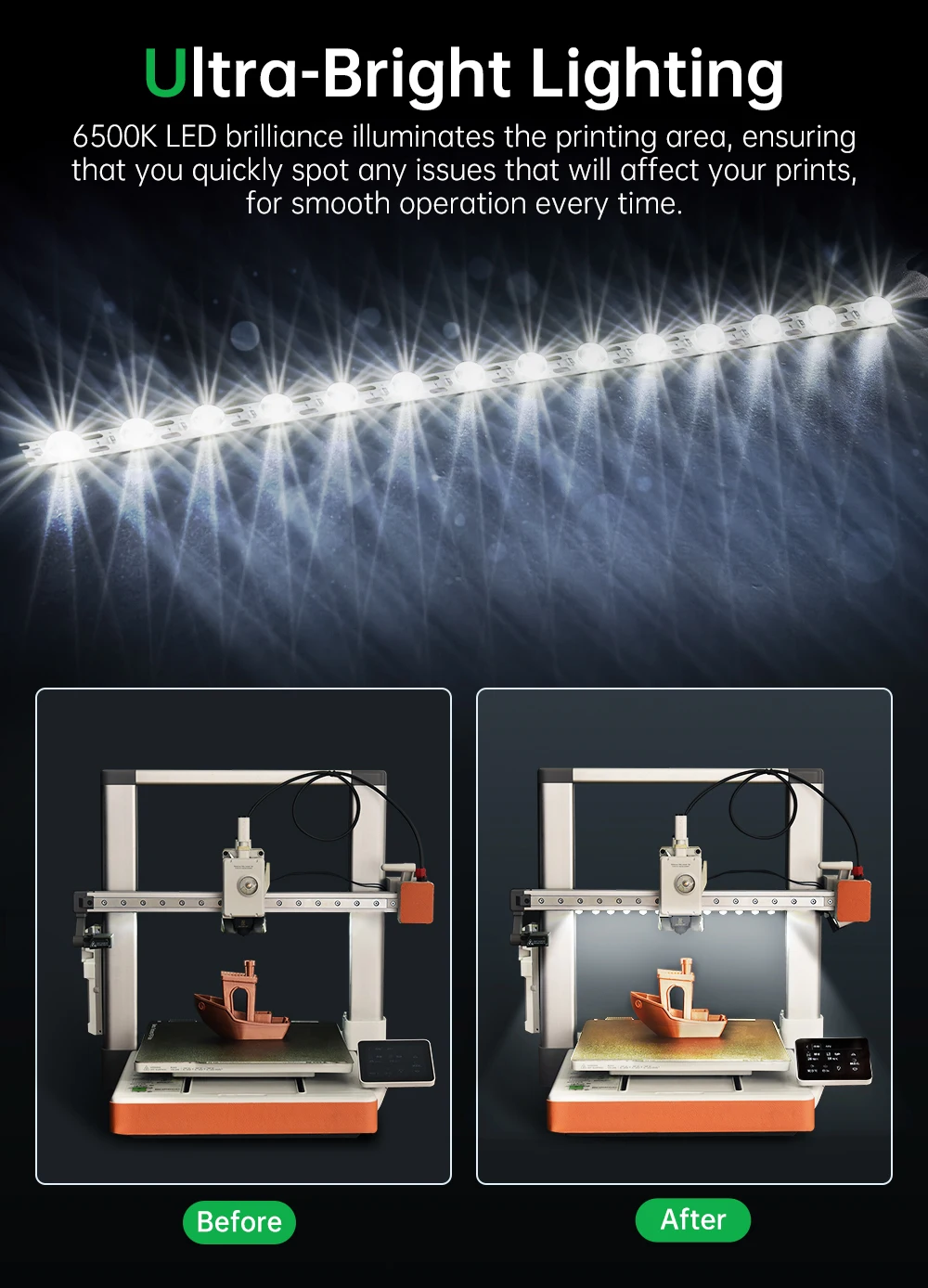 La temperatura de color del LED no es ideal, ya que la imagen de la cámara se vuelve demasiado violeta. No encajará con mis otras impresoras P1S.