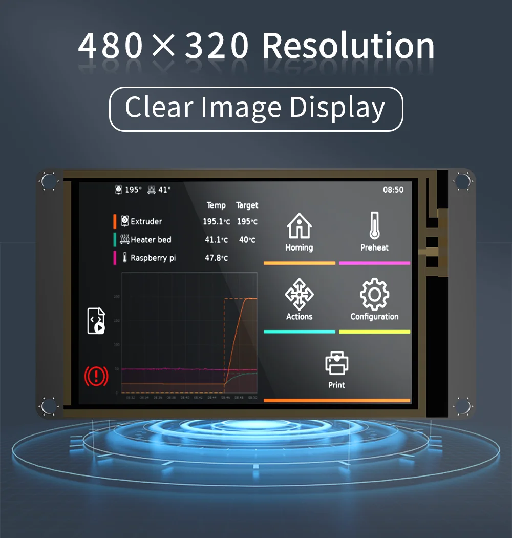 BIGTREETECH TFT35 SPI V2.1 es una pantalla de impresora 3D de tamaño mediano y transparente desarrollada por el equipo de impresión 3D de Shenzhen Big Tree Technology Co., Ltd.