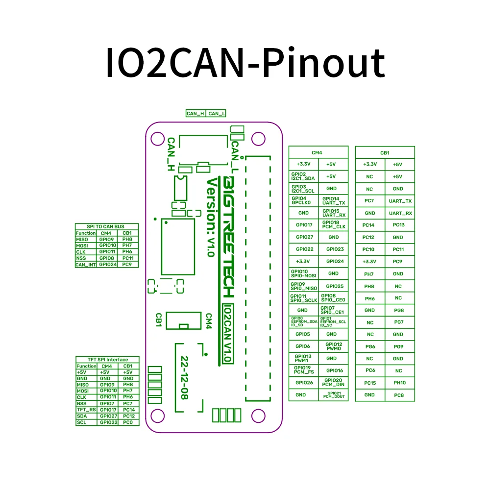 Debido a la ausencia de una interfaz FPC IPS en el adaptador PI4B, cuando se utiliza TFT 35 SPI con el adaptador PI4B + CB1 v2.2, todavía se requiere un módulo IO2CAN para la conversión de la interfaz.