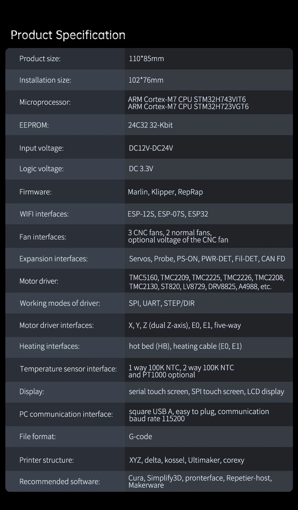 BIGTREETECH SKR 3 is a 32-bit motherboard designed for 3D printer, which launched by 3D printing team of Shenzhen Big Tree Technology Co., Ltd. It is upgrade of SKR V1.4/Turbo.