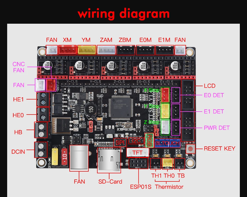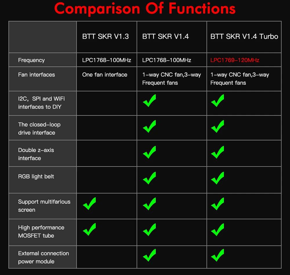 Para Voron:2 piezasSKR V1.4/V1.4 Turbo+1 unidadPITFT50 (Solo volador 2.4 Klipper, es necesario agregar 1 unidad Raspberry Pi (Raspberry Pi no incluido)