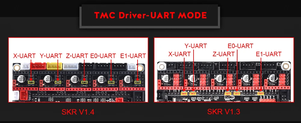 La diferencia de conducción.cableado de modo entre SKR V1.3 y SKR V1.4