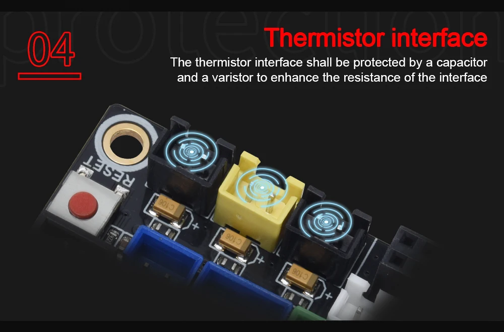 Interfaz de termistorLa interfaz del termistor debe estar protegida por un condensador y un varistor para mejorar la resistencia de la interfaz.