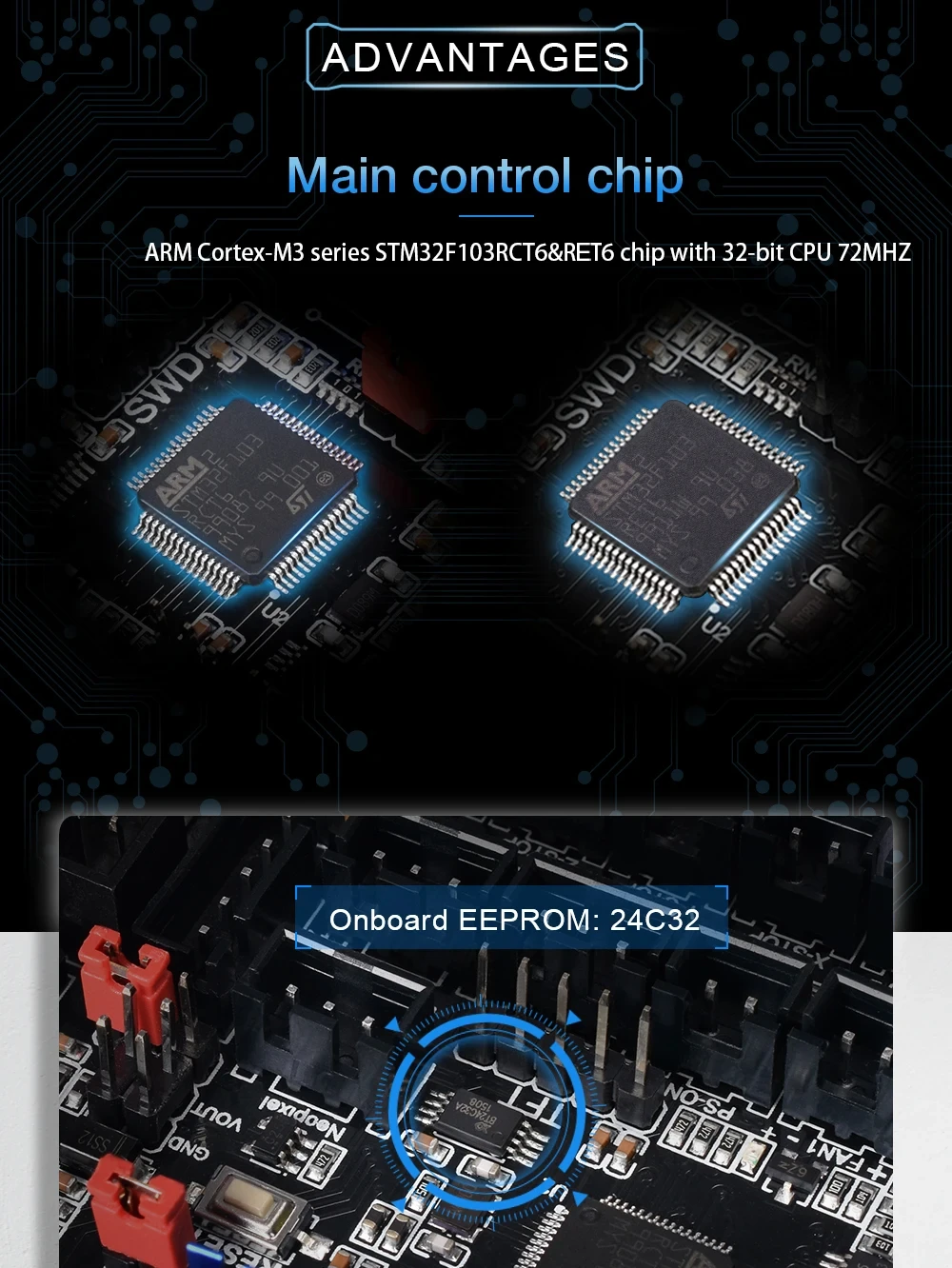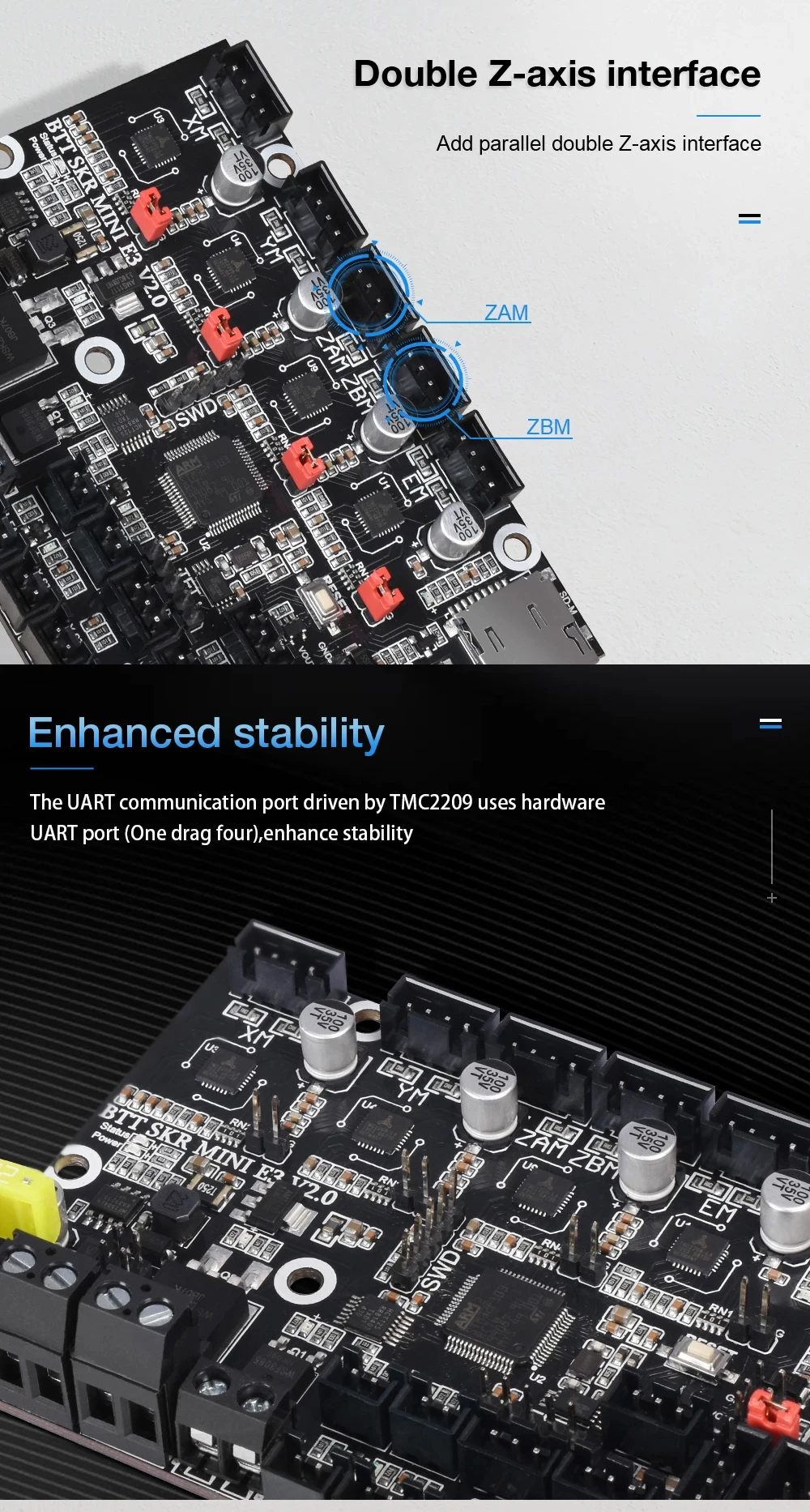 Control avanzado del motor: cuenta con el modo UART del TMC2209 integrado para un control estable del motor y mejora la precisión de la impresora.