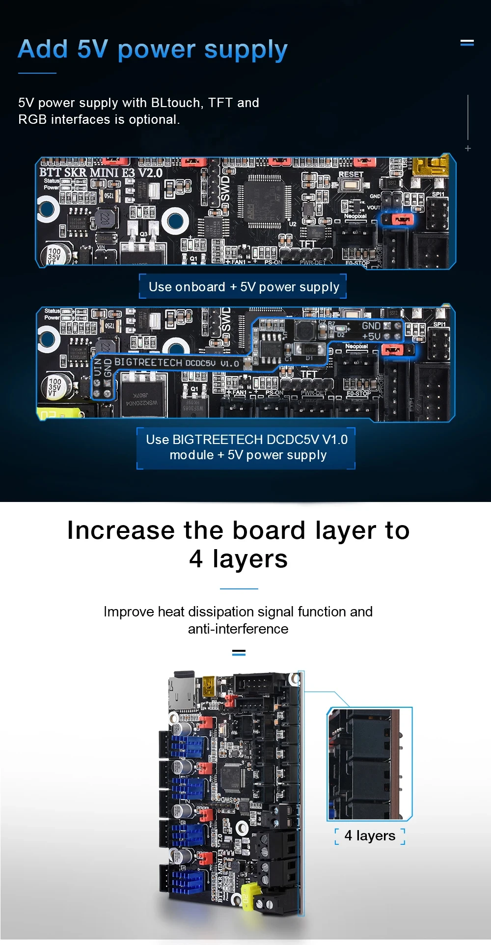 Agregar fuente de alimentación de 5V:La fuente de alimentación de 5 V con interfaces BLtouch, TFT y RGB es opcional.