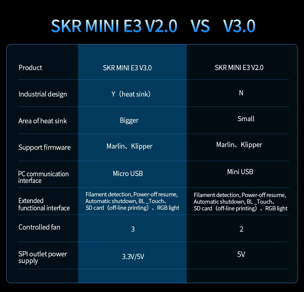 SKR MINI E3 V3.0 es una versión mejorada de V2.0, que tiene las siguientes características: