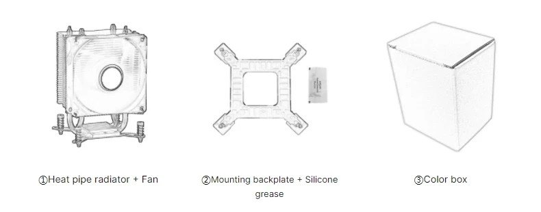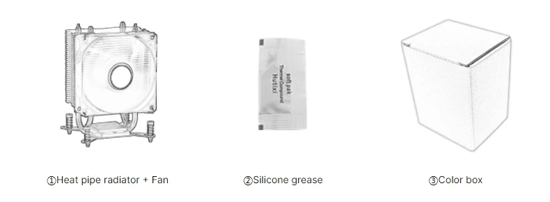 Paquete: Caja de color (refrigerador de CPU*1, placa posterior de fijación*1, grasa de silicona*1)