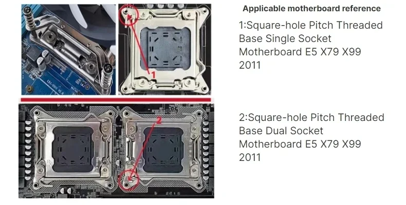 Plataforma aplicable al producto: LGA 2011 2066 2099 E5 xeon X79 X99 x299 2011-3 (adecuada para placas base de computadora con bases roscadas cuadradas) (si tiene amigos inciertos, comuníquese con nuestro servicio de atención al cliente)