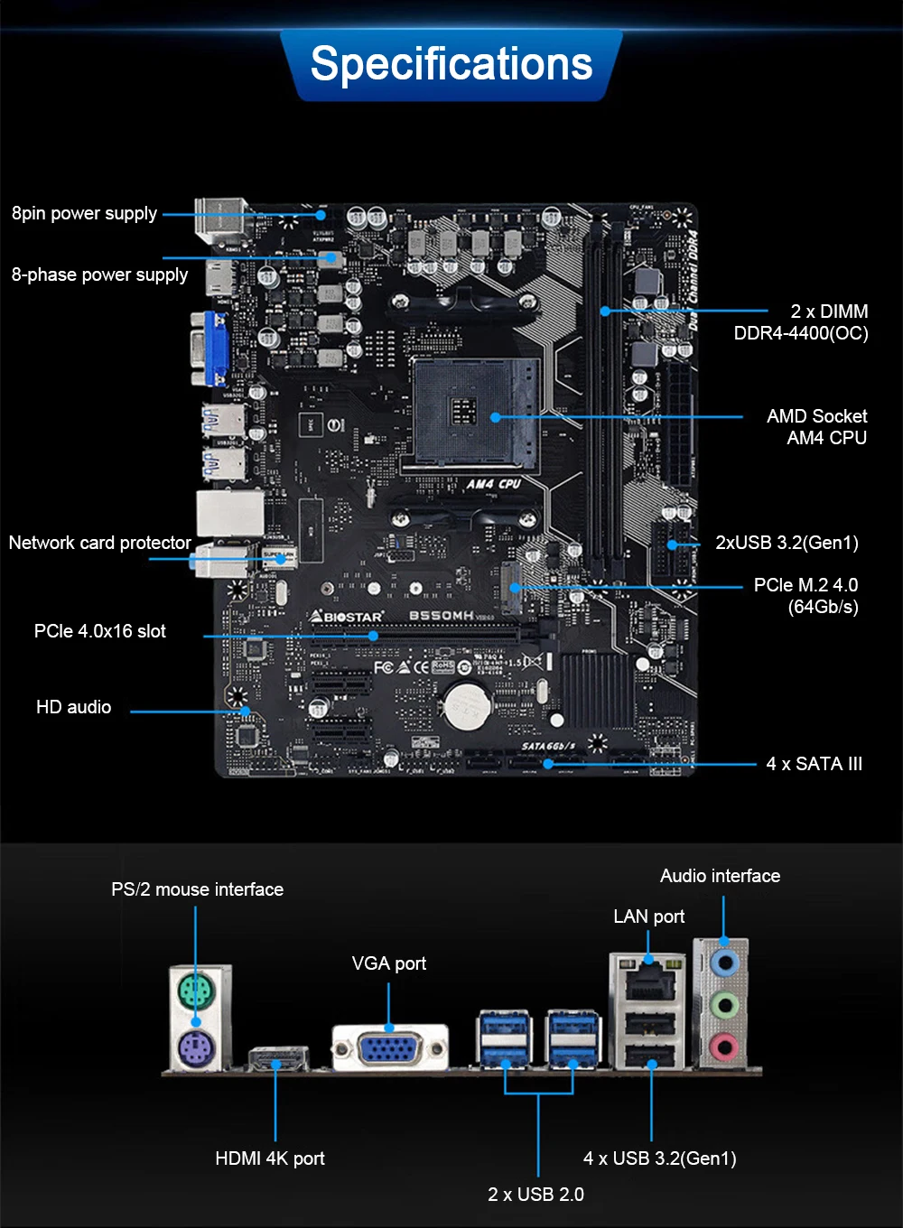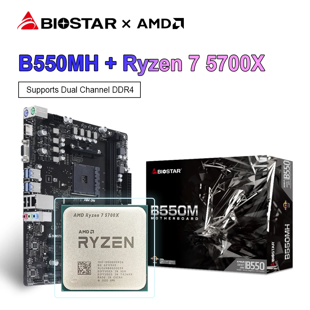 BIOSTAR nueva placa base GAMING B550MH Micro-ATX B550M + AMD Ryzen 7 5700X R7 5700X CPU procesador DDR4 64G AM4 Kit de placa base