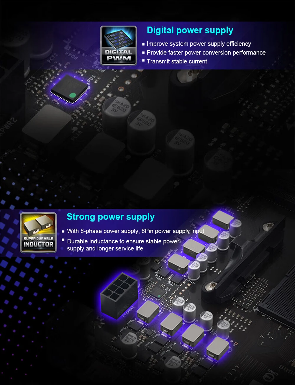 Admite DDR4 de doble canal 4400 + (overclockeado), 4000 (overclockeado), 3600 (overclockeado) y 3200 (overclockeado) MHz
