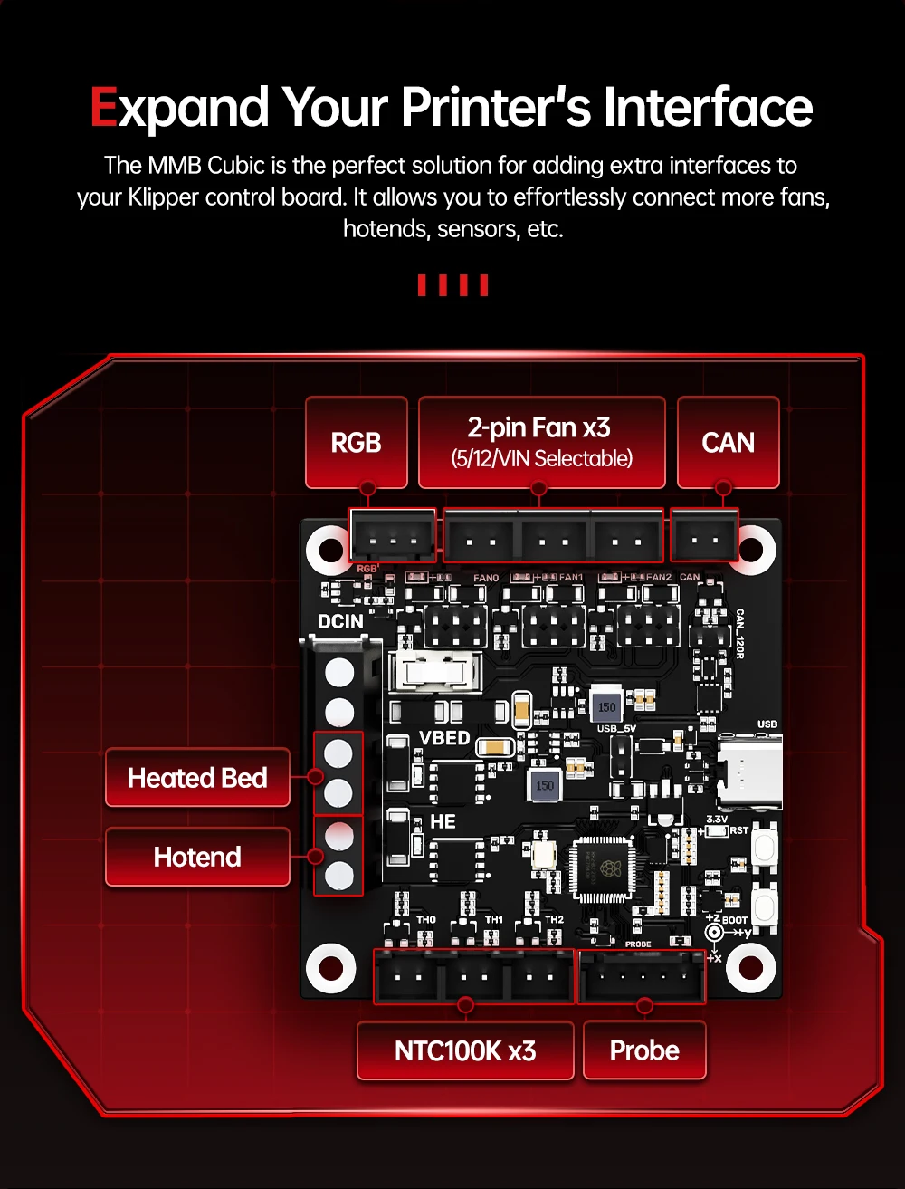 BIQU MMB Cubic V1.0 Klipper Tablero de control principal Placa de expansión para MMB CAN Hotend sensores de ventilador cama calentada varilla calefactora impresora 3D