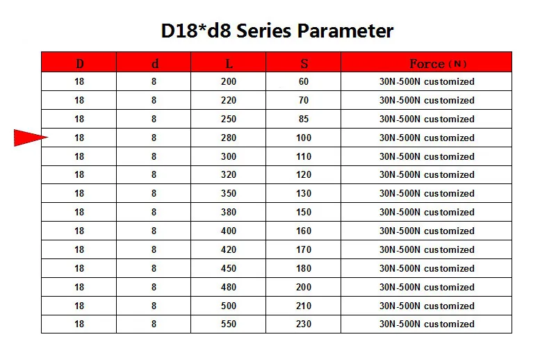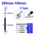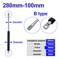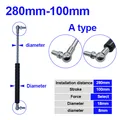 Bisagra plegable con resorte de Gas, varilla de 18x8, 50N-500N/5kg-50kg, soporte de elevación de fuerza, distancia central del orificio, distancia de carrera de 280mm, 100mm
