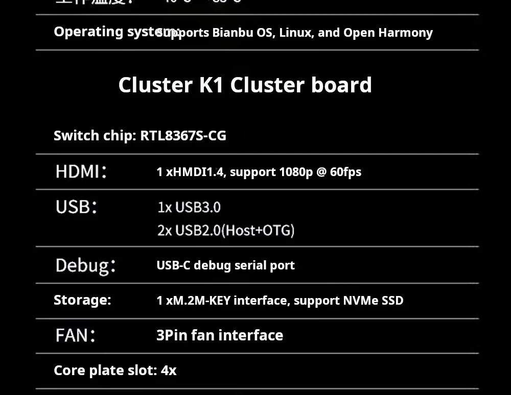 1.Arquitectura de código abierto RISC-V para una personalización flexible 2.2 Aceleración TOPS AI para inferencia en el dispositivo 3.Soporte de agrupación nativa para calcular a escala sin problemas 4.Cadena de suministro totalmente nacional que garantiza seguridad y cumplimiento. 5.Ricas encabezados de E/S y expansión para creación rápida de prototipos Imágenes detalladas