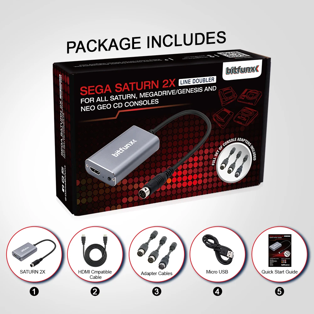 La mayoría de los televisores modernos tienen conectividad a través de HDMI y carecen de algunas de las entradas más antiguas que utilizan las consolas retro. Con los cables adaptadores HDMI Bitfunx, puede traer sus consolas antiguas como SEGA Saturn, megadrive y Neo Geo CD vuelven a la vida en un televisor más nuevo y revive esos juegos clásicos con una simple solución "Plug and Play".