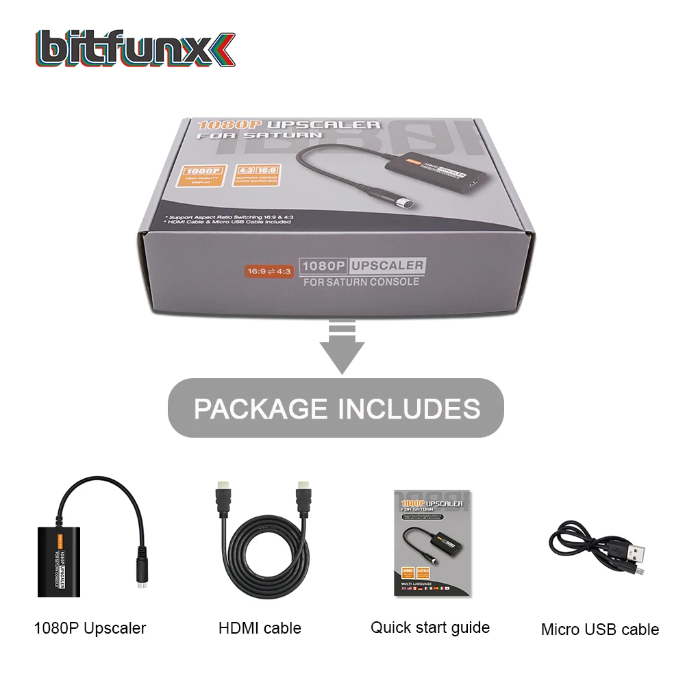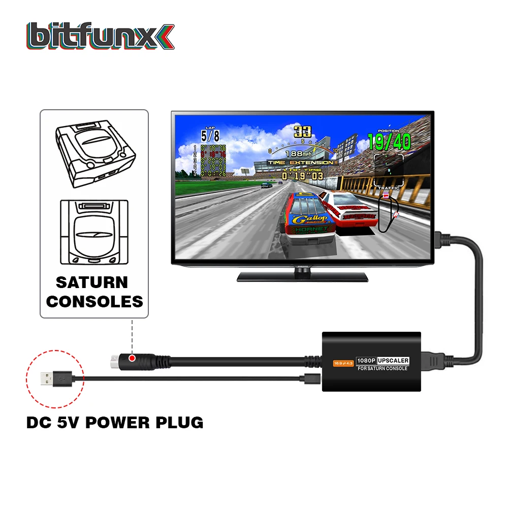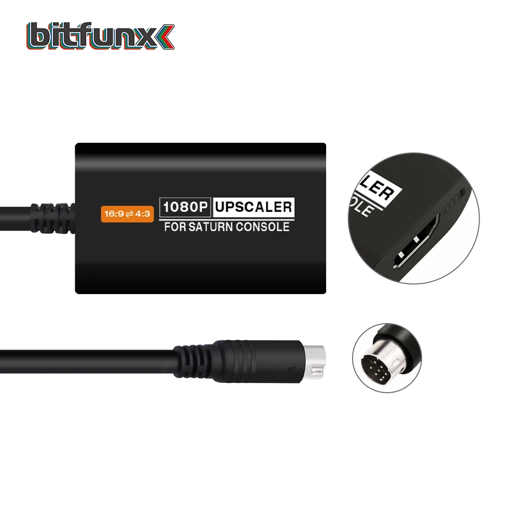 Convertidor HDMI Bitfunx para SEGA Saturn SS 1080p Upscaler 4:3/16:9 Conmutador de relación de apariencia Entrada S-video