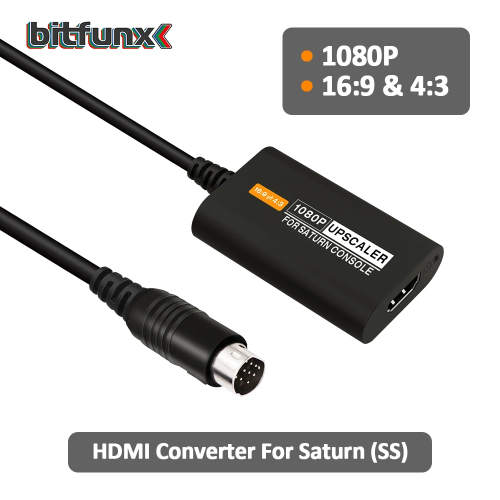 Convertidor HDMI Bitfunx para SEGA Saturn SS 1080p Upscaler 4:3/16:9 Conmutador de relación de apariencia Entrada S-video