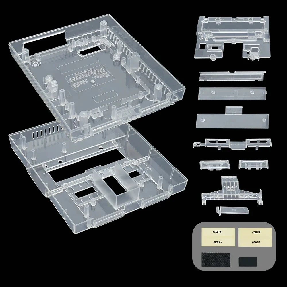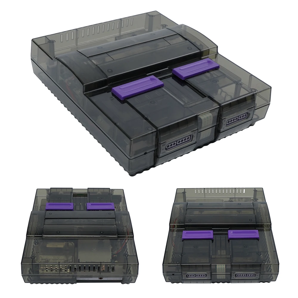 Carcasa transparente de repuesto SNES para Nintendo SNES SFC versión de EE. UU. consolas de juegos Retro negro translúcido