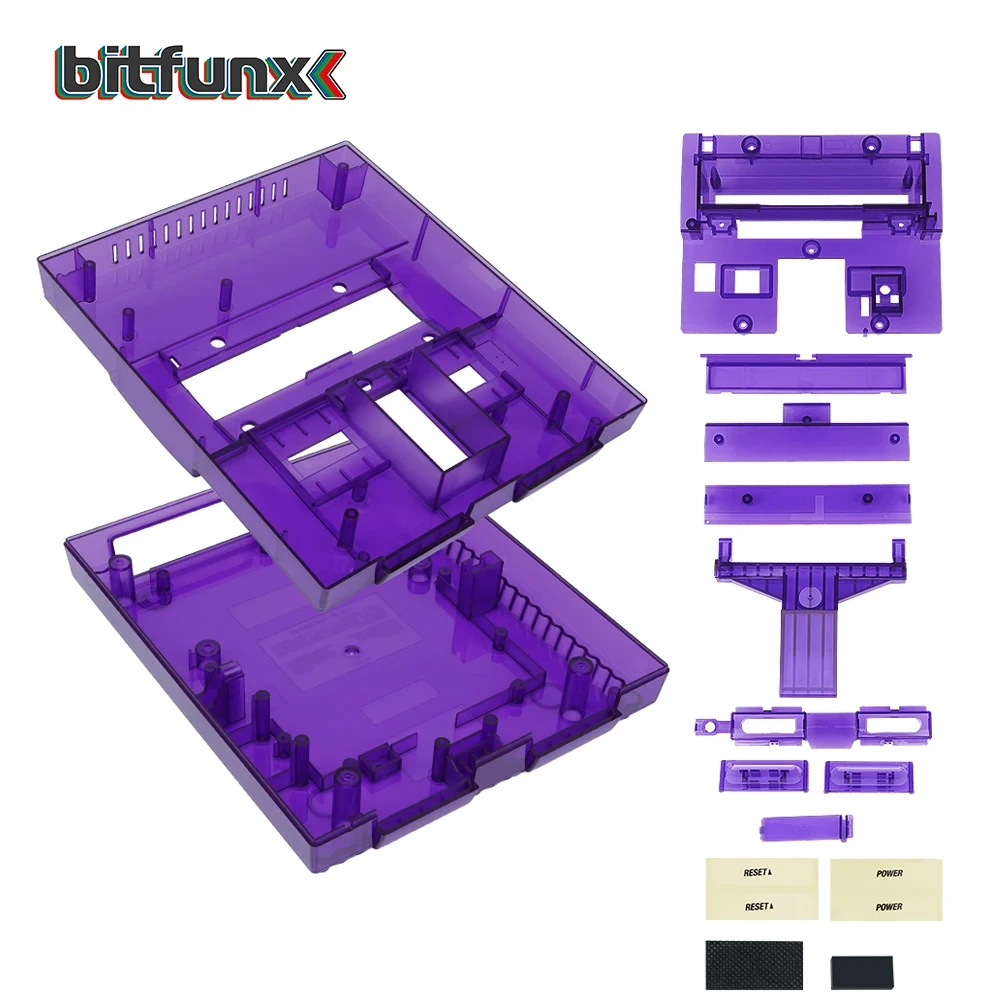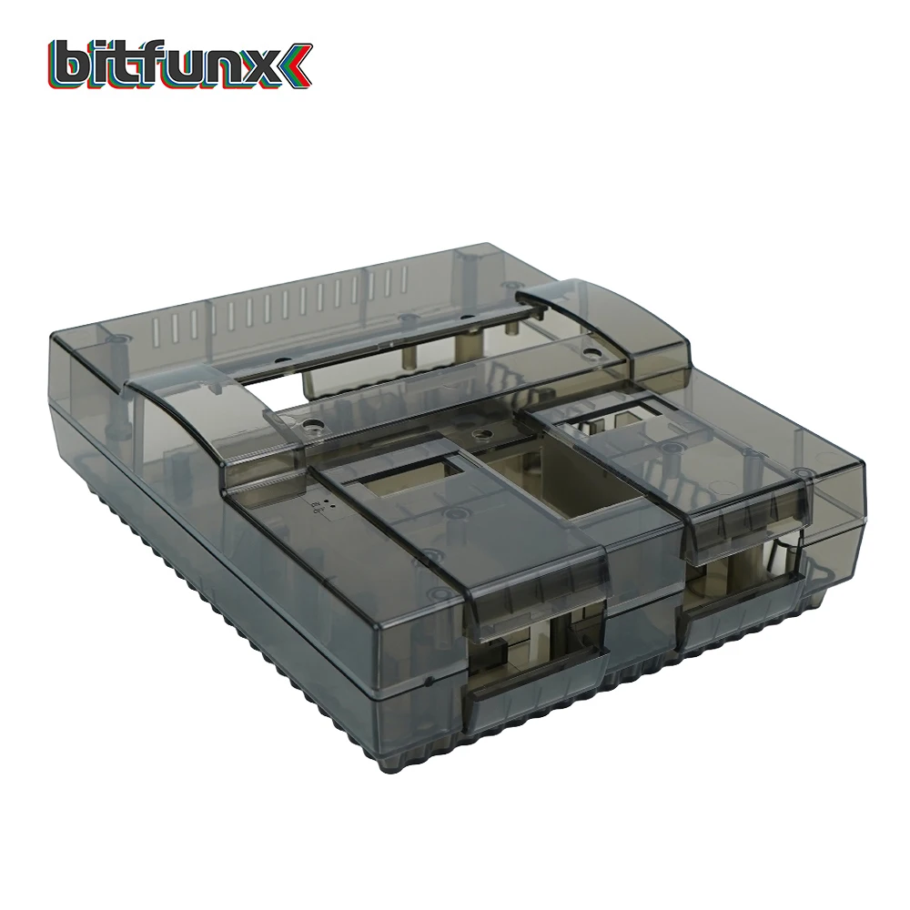 Comprar Bitfunx SNES carcasa de repuesto transparente para Nintendo SNES SFC versión estadounidense consolas de juegos Retro negro translúcido