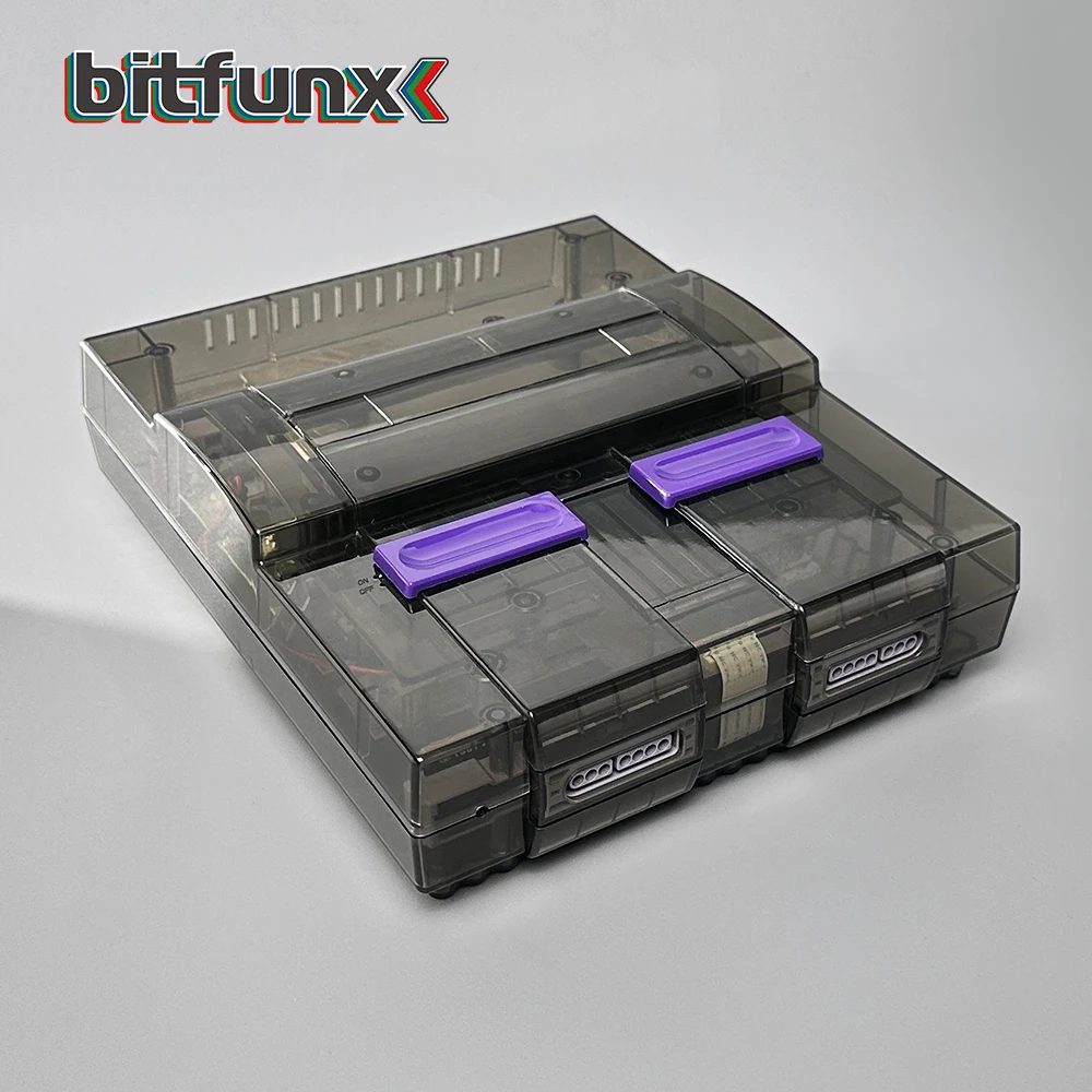 Comprar Bitfunx SNES carcasa de repuesto transparente para Nintendo SNES SFC versión estadounidense consolas de juegos Retro negro translúcido