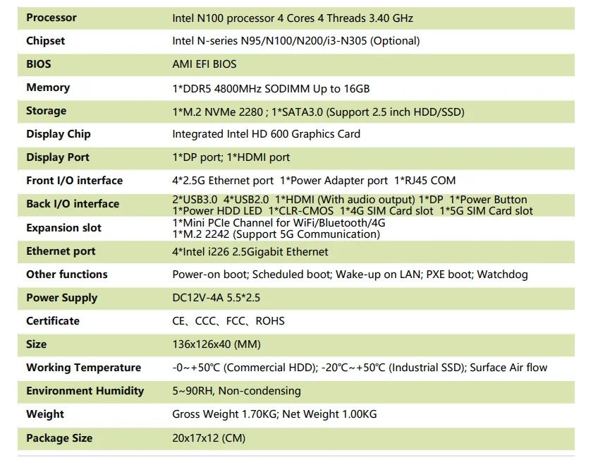 Comprar BKHD G30W Alder Lake N100 4x2.5GE WiFi expandible 4G 5G enrutador comercial doméstico sin ventilador Host de red para enrutador firewall
