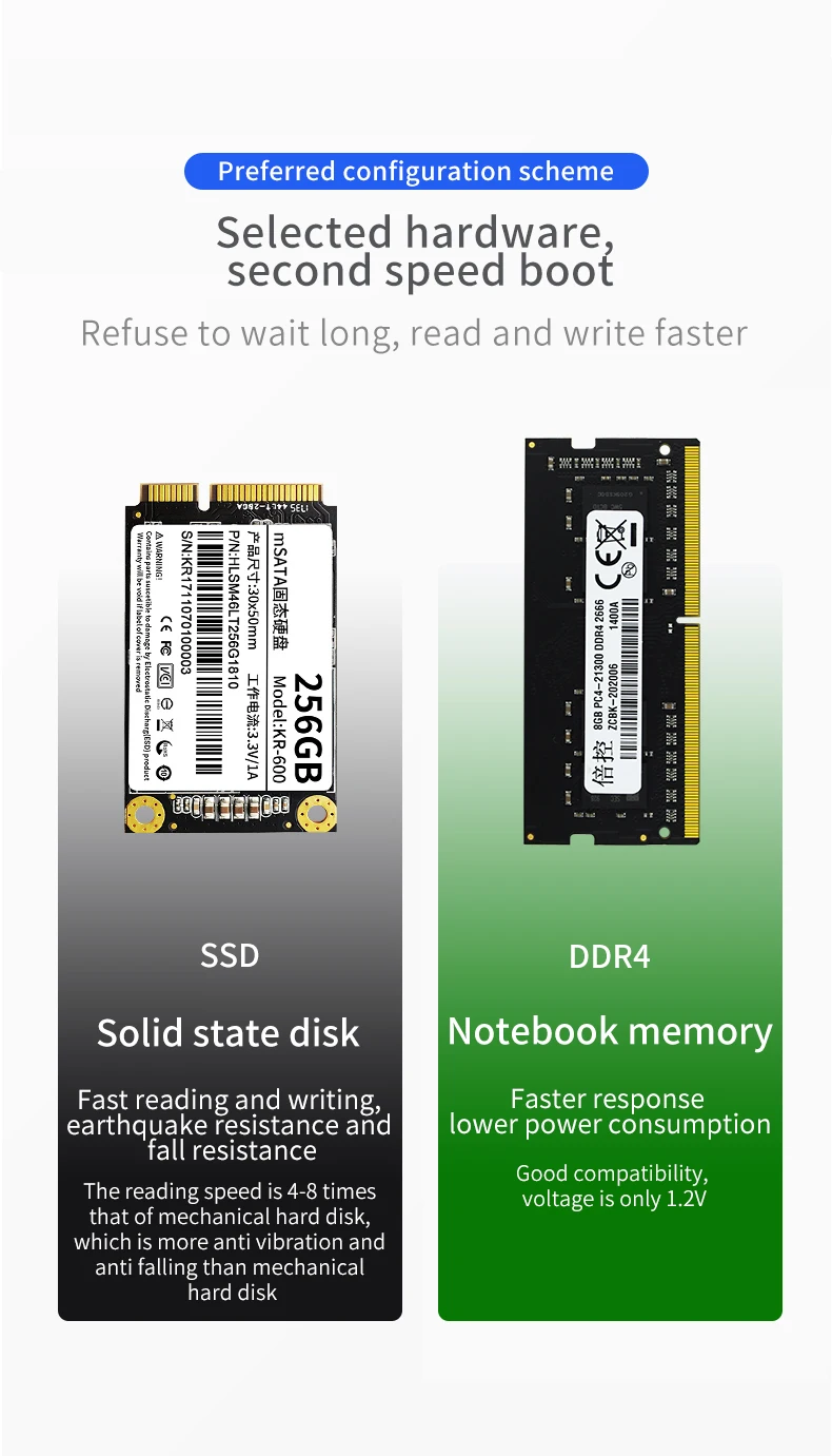 1 * ranura mSATA, 1 * SATA 3,0, compatible con HDD/SSD de 2,5 pulgadas