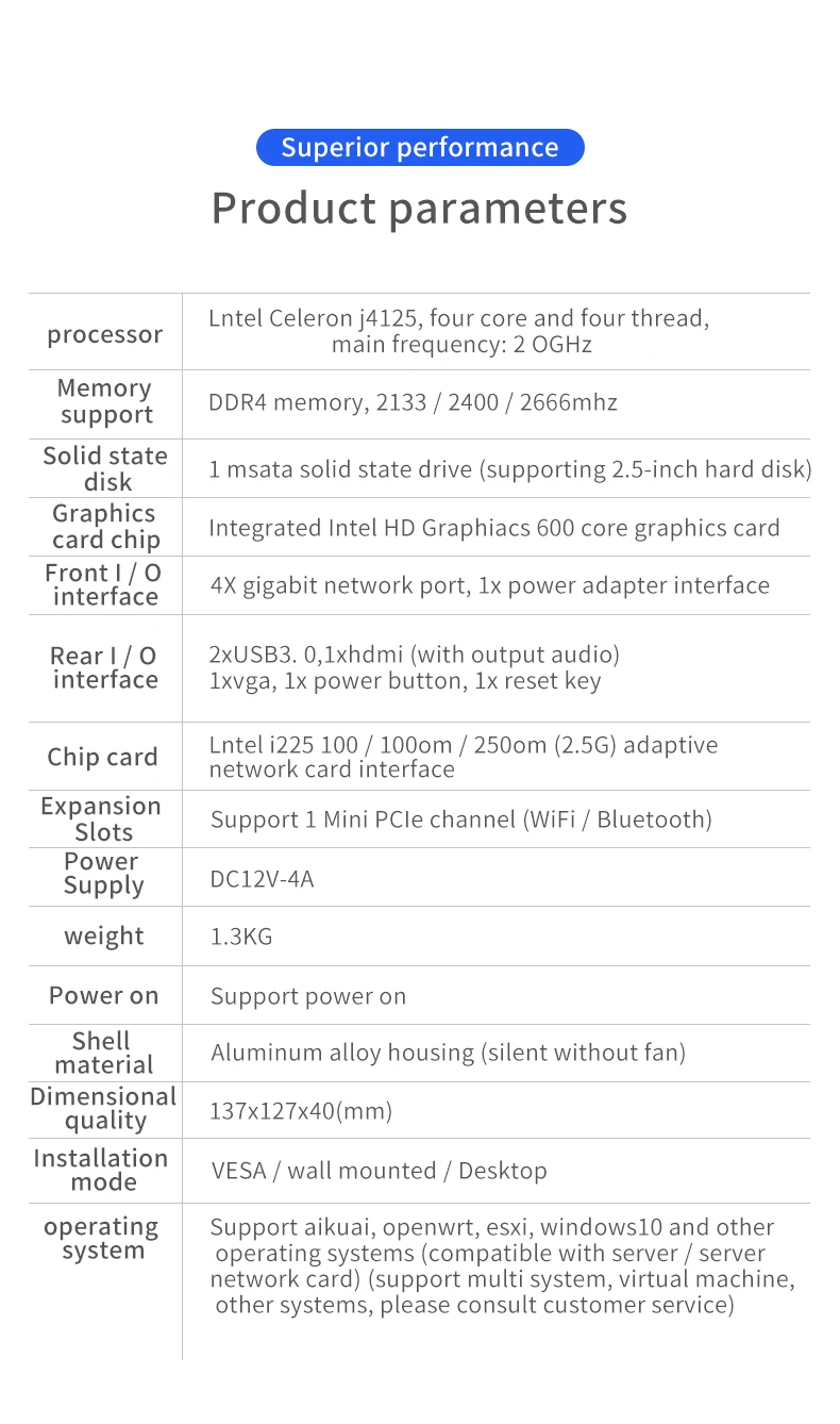 4 * tarjeta de red Intel 2,5 Gigabit, 2 * USB3.0, 1 * interfaz de video