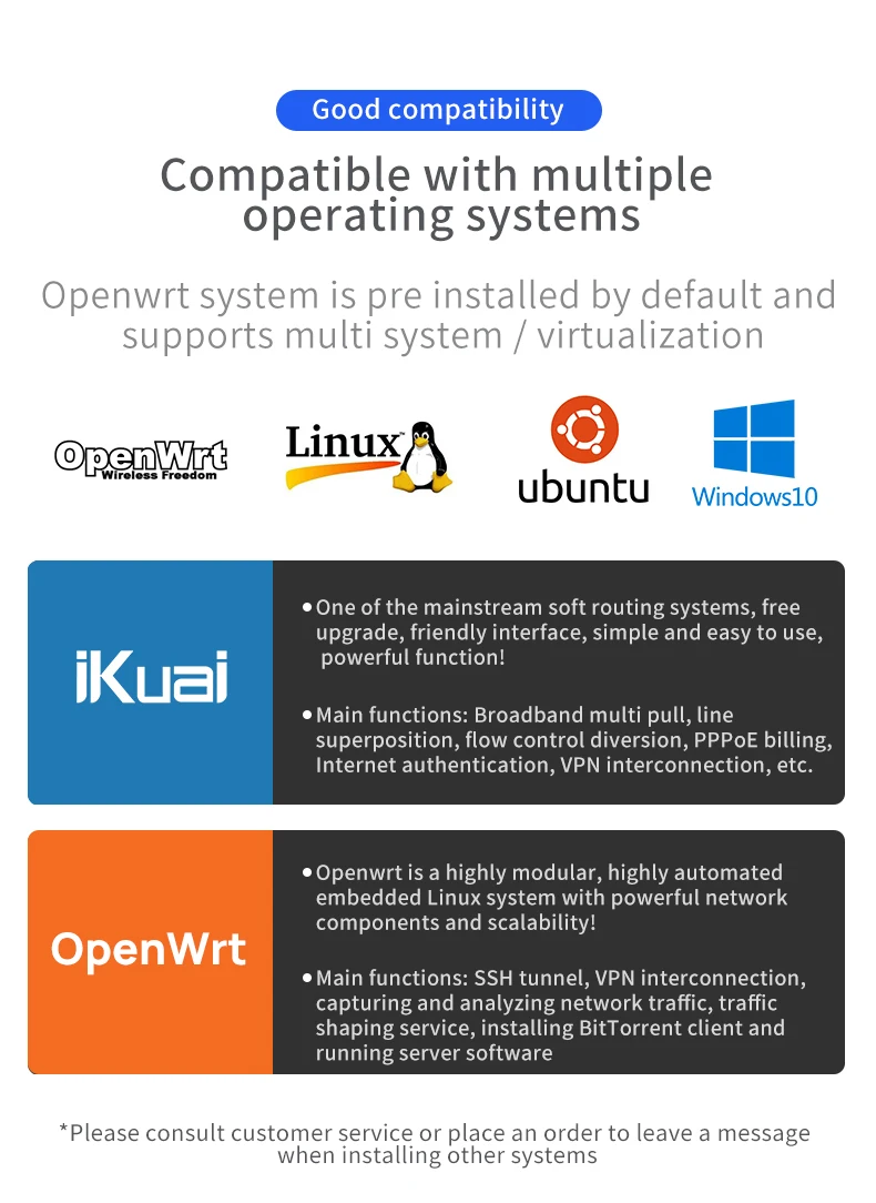 Windows,10,Server2012/EXSI/Ikuai/Mikrotik/Openwrt/Ubuntu/Centos/Pfsense/Lede/Liunx