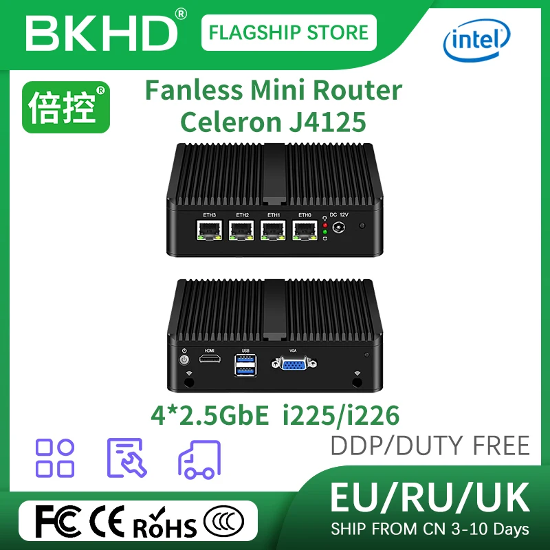 Comprar BKHD-Mini PC Pfsense G30, 4 puertos Lan 2500M, enrutador suave, J4125, DDR4 RAM, USB3.0, VGA, procesador de ordenador para negocios y juegos industriales