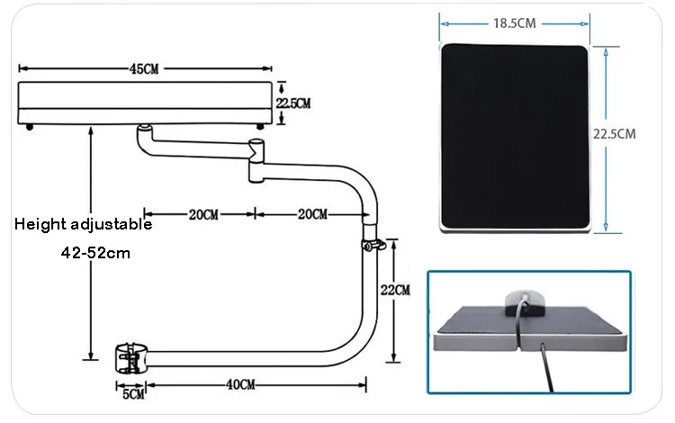 Inclinación del teclado/portátil: -85 ° ~ + 20 °; Giro: -45 ° ~ + 45 °; Rotación: 360 °