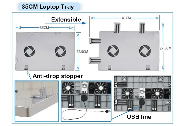 Soporte para teclado/portátil con ventilador: 35*22,5 cm extensible a 41*27,5 cm
